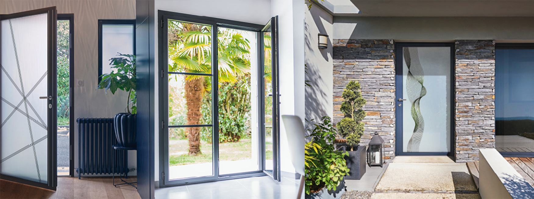 D’une finition exceptionnelle, nos portes d’entrée de la marque Volma offrent une gamme variée pour vous permettre d’adopter le style qui correspondra à votre habitation : porte pleine en aluminium cosy classique (avec panneaux massifs), porte semi-vitrée (constituée de verre et de panneaux) ou porte vitrée pour laisser entrer la lumière.